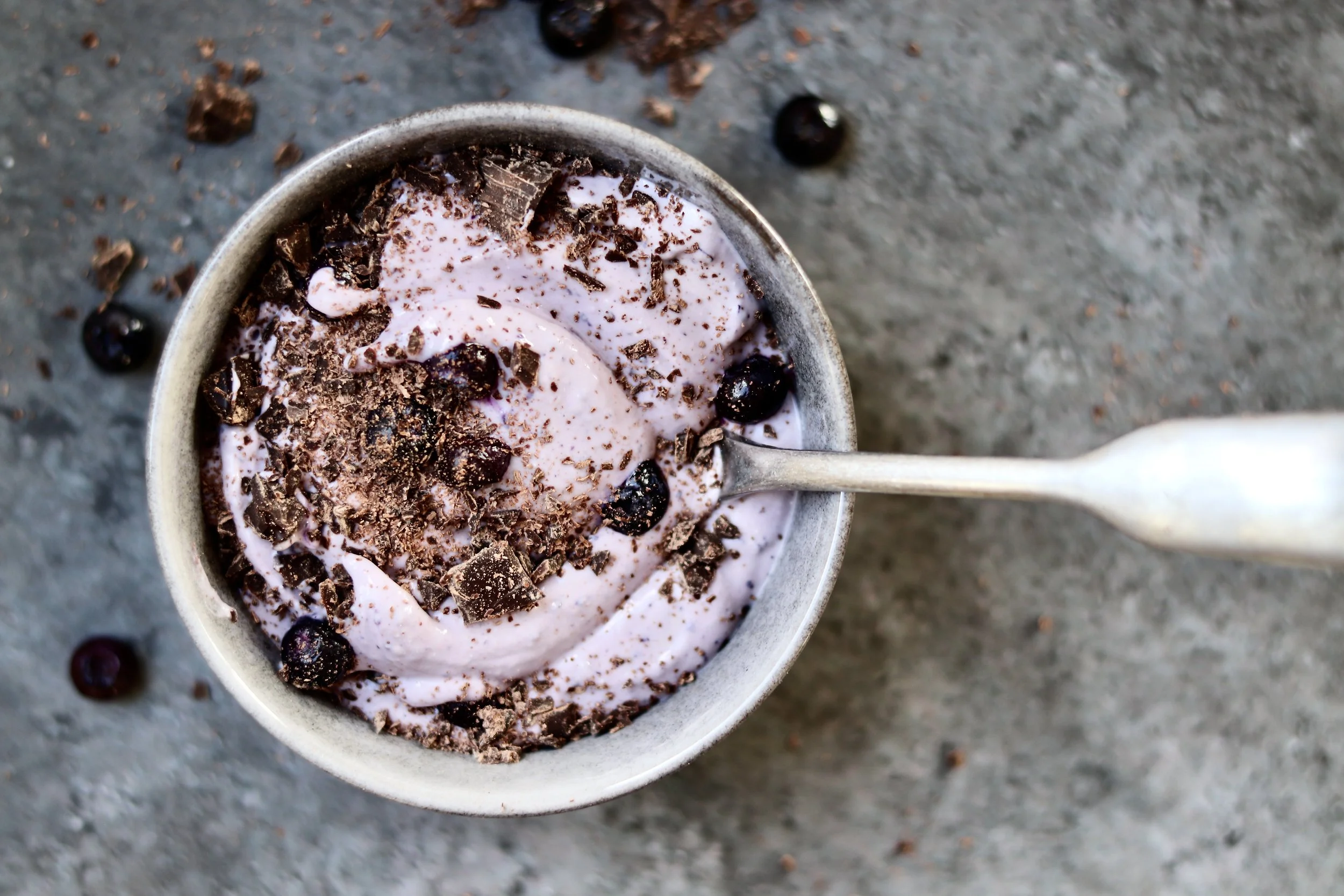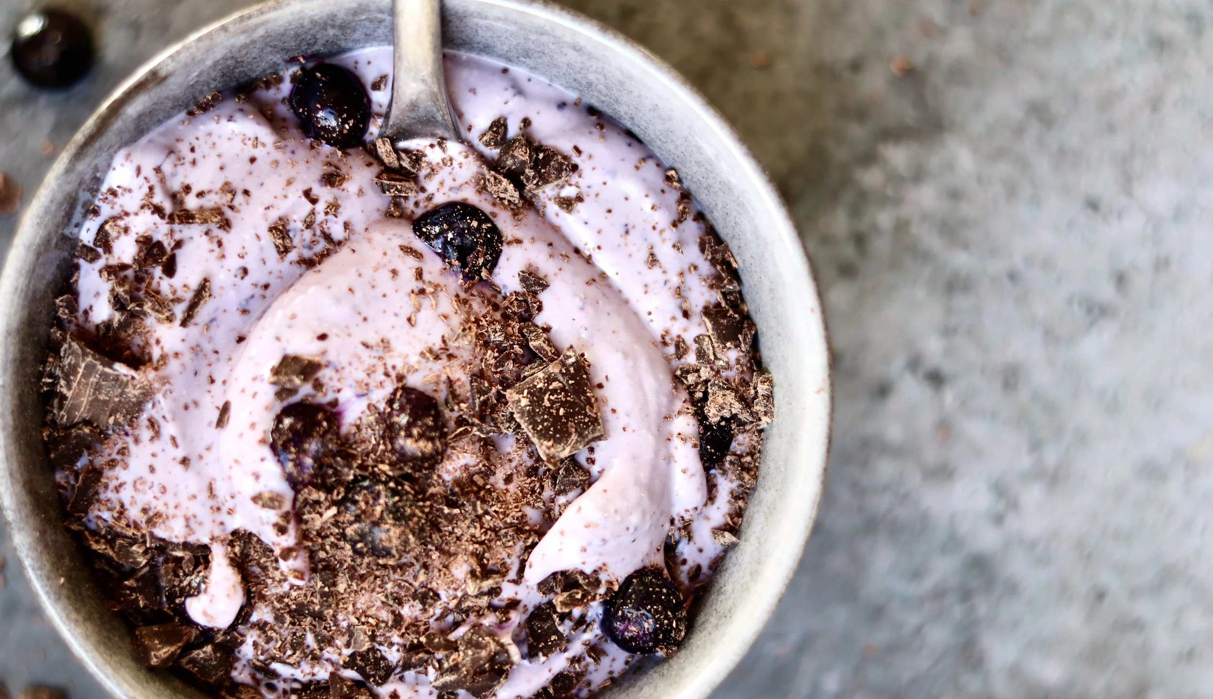 1. Blend the cottage cheese, protein powder, yoghurt, blueberries, sweetener, and vanilla until smooth and pudding-like.