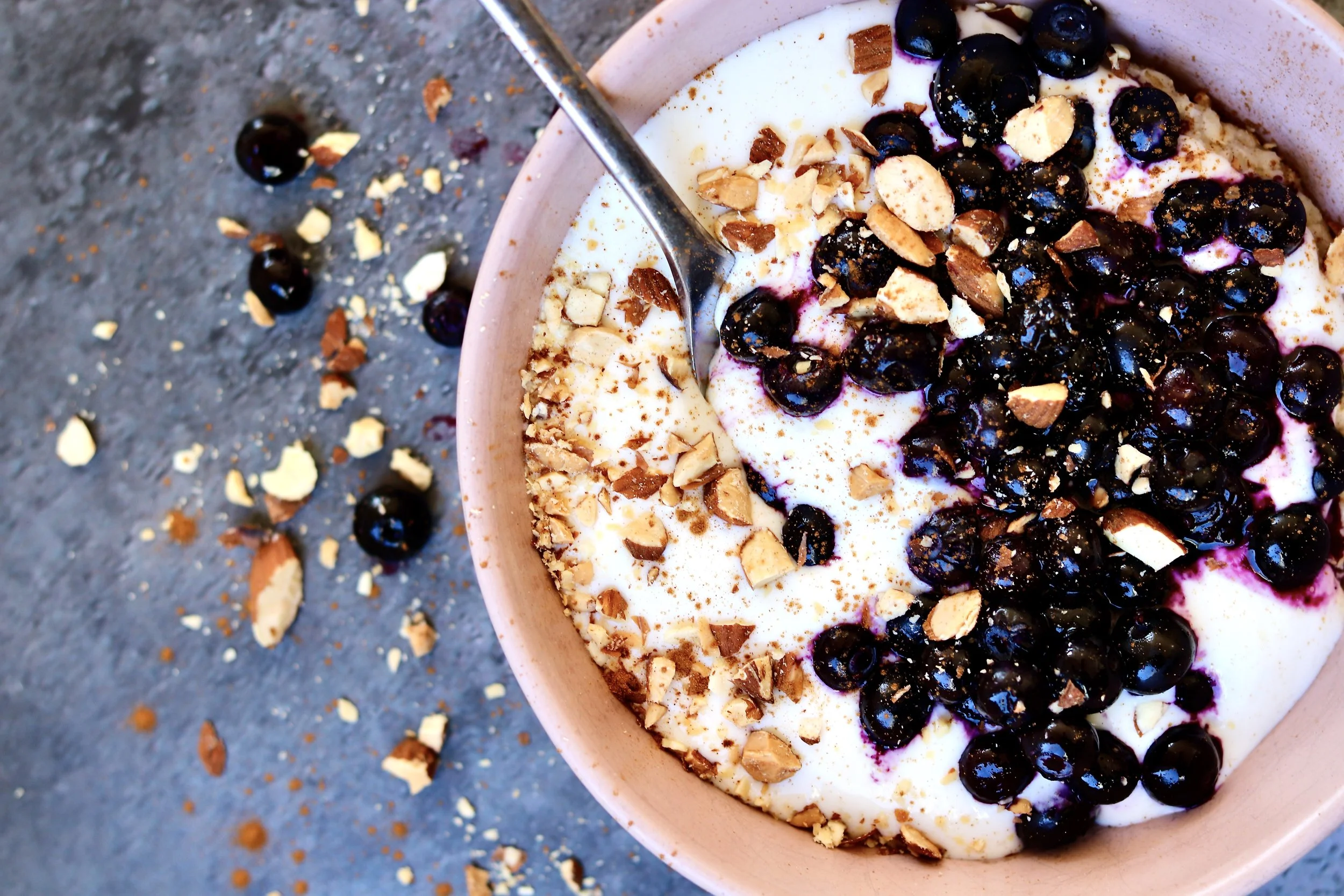 4. Top with blueberries and a sprinkle of almonds ( I love roasted almonds for extra crunch).
