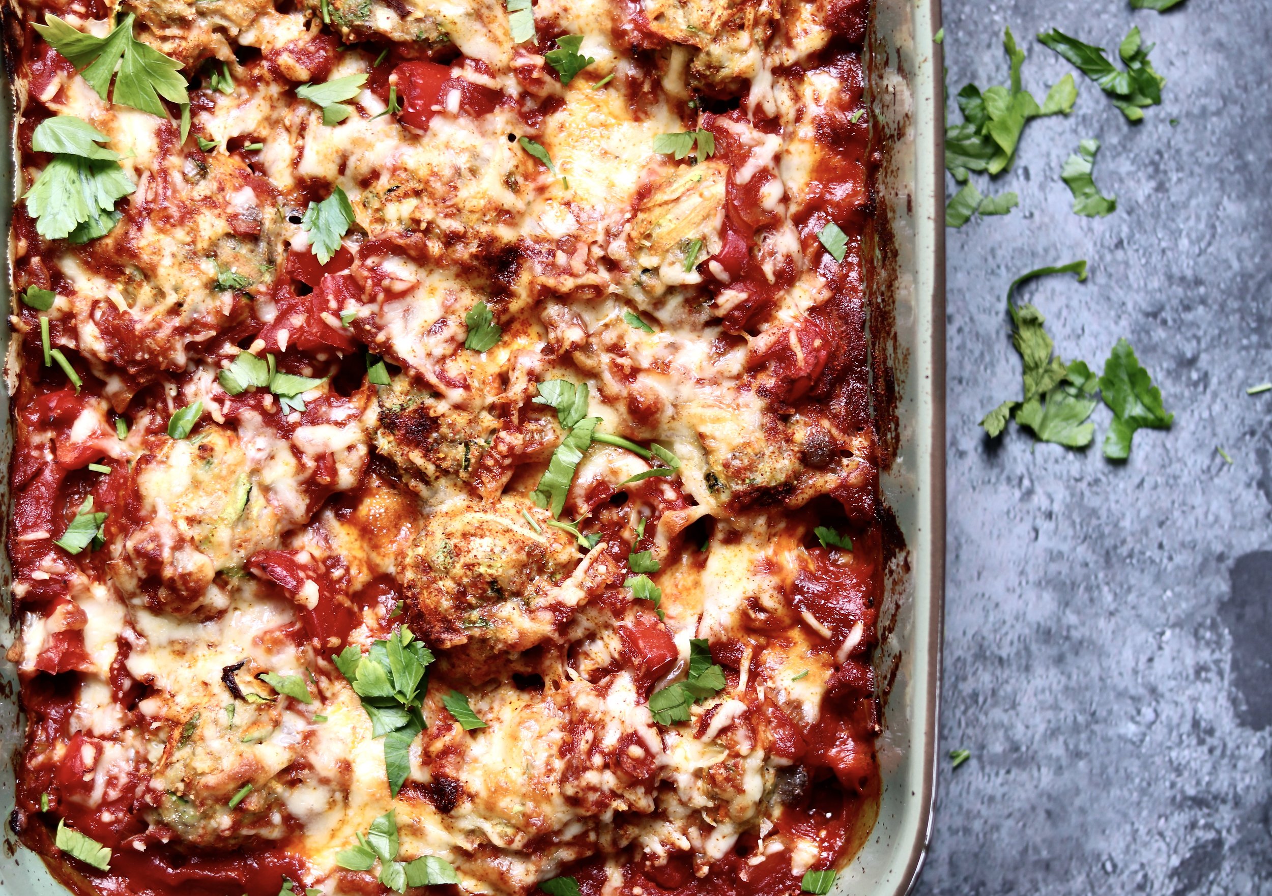 Why this is peri-perfect… This peri-friendly take on the classic chicken parmi is high in protein, nutrient-rich, and satisfying without the excess carbs and fats of a traditional version. Lean chicken mince forms protein-packed meatballs, helping to maintain muscle and support metabolism in midlife, while zucchini and carrot add fibre and micronutrients for gut and hormone health. The tomato-vegetable sauce is bursting with flavour, antioxidants, and anti-inflammatory nutrients without added sugar or oil. A modest sprinkle of mozzarella and parmesan provides creamy satisfaction and extra protein to keep you full. This dish delivers all the comfort of a classic parmi while nourishing your body and supporting balanced energy. This is an absolute winner with our teenagers, served with brown rice.