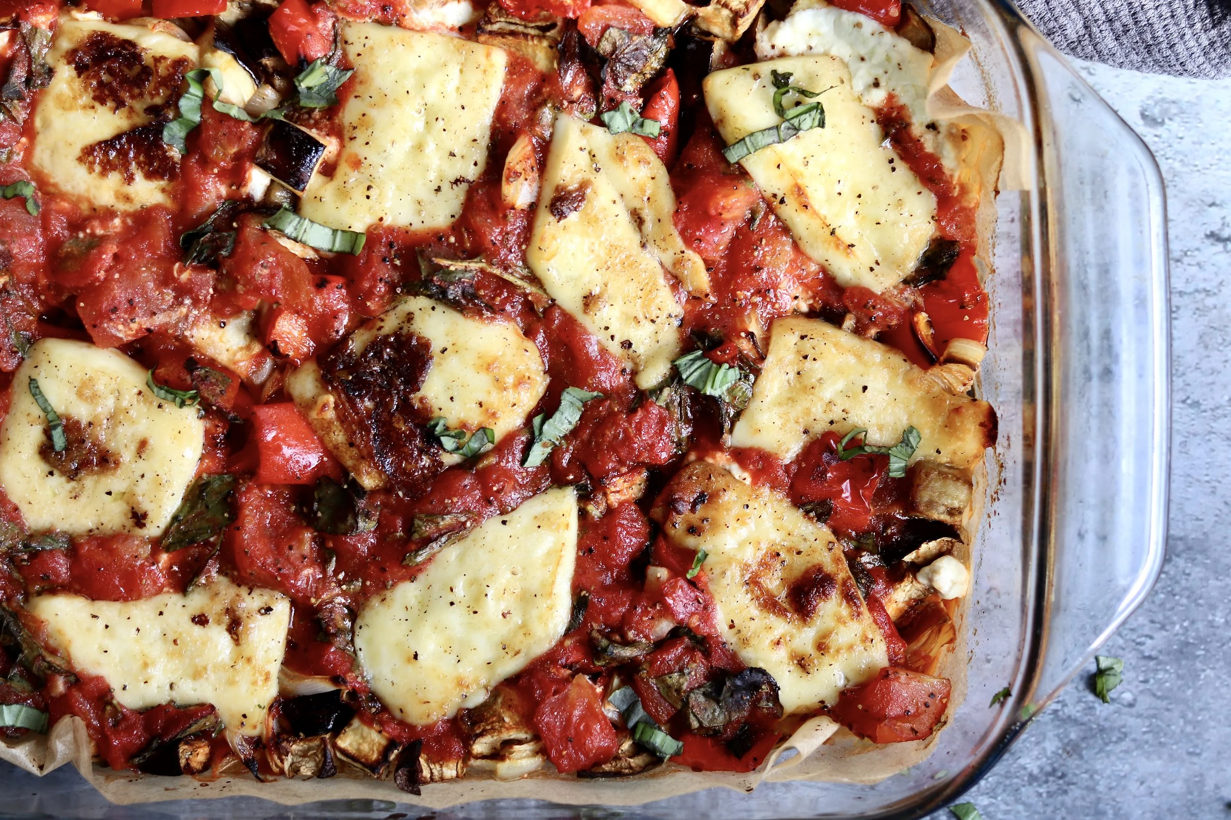 Bake uncovered for 20 minutes, until haloumi is golden and bubbling.