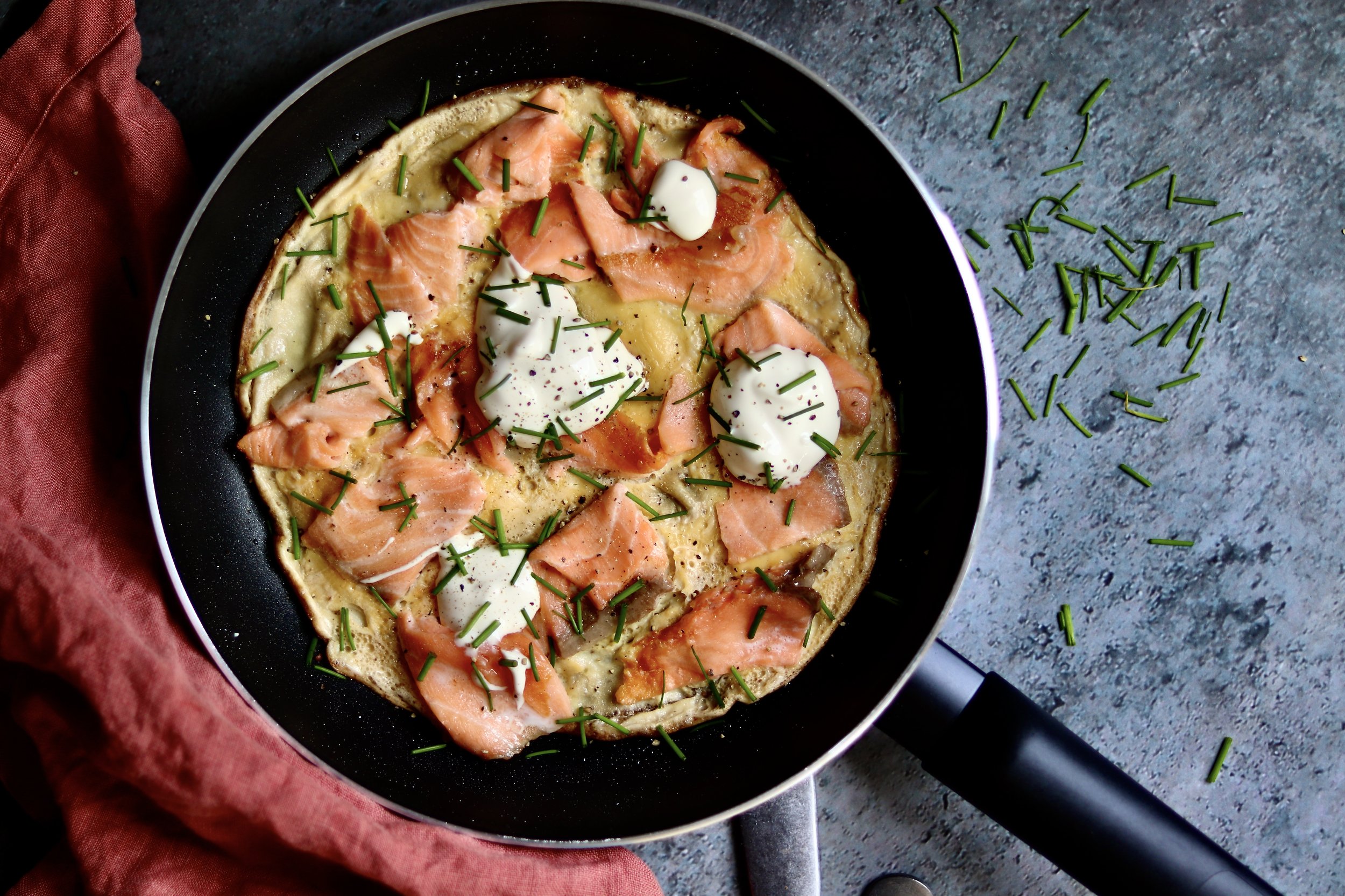 Why this is peri-perfect… This omelette gives you everything your perimenopausal body is quietly begging for first thing in the morning: steady protein, healthy fats, and zero blood-sugar chaos. The eggs and smoked salmon deliver over 30g of protein to fire up your metabolism, keep cravings calm, and support lean muscle - your greatest ally in midlife. The omega-3s in salmon smooth inflammation, lift mood, and support brain clarity on foggy days. And that little swirl of crème fraîche adds creamy satisfaction so you start your day feeling nourished, grounded, and beautifully steady. Plus, absolutely delicious.