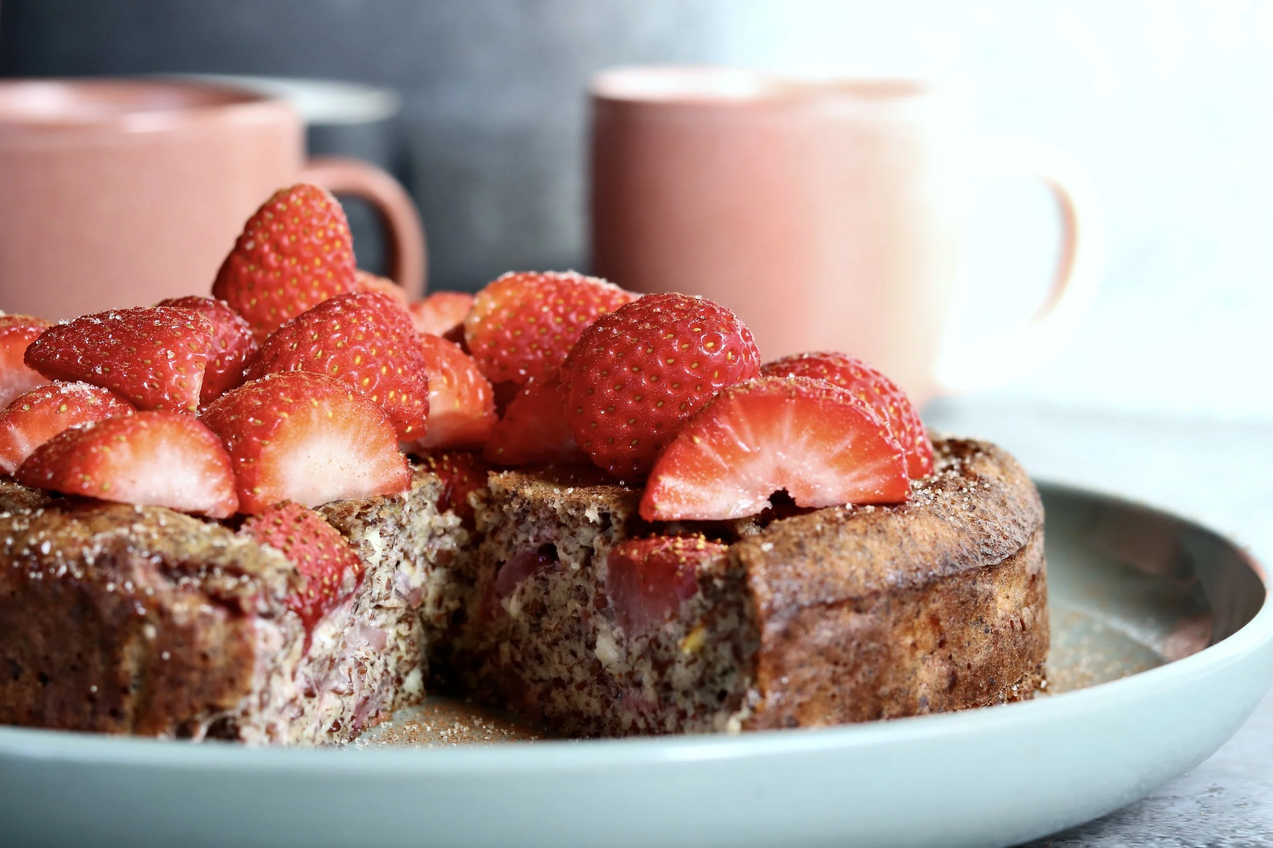 Why this is peri-perfect…Cake that’s good for you! This one is a protein-packed, nutrient-rich treat designed to satisfy cravings without derailing your metabolism. Flax meal and eggs provide protein, fibre, and healthy fats to support hormone balance, muscle maintenance, and steady energy. Cottage cheese adds creaminess and extra protein, while olive oil delivers heart-healthy fats that keep you full and satisfied. Sweet strawberries bring antioxidants, fibre, and a natural burst of sweetness, complemented by a hint of lemon zest for brightness. With optional protein powder, this cake becomes an even more muscle- and hormone-supporting dessert that feels indulgent while nourishing your body from the inside out.