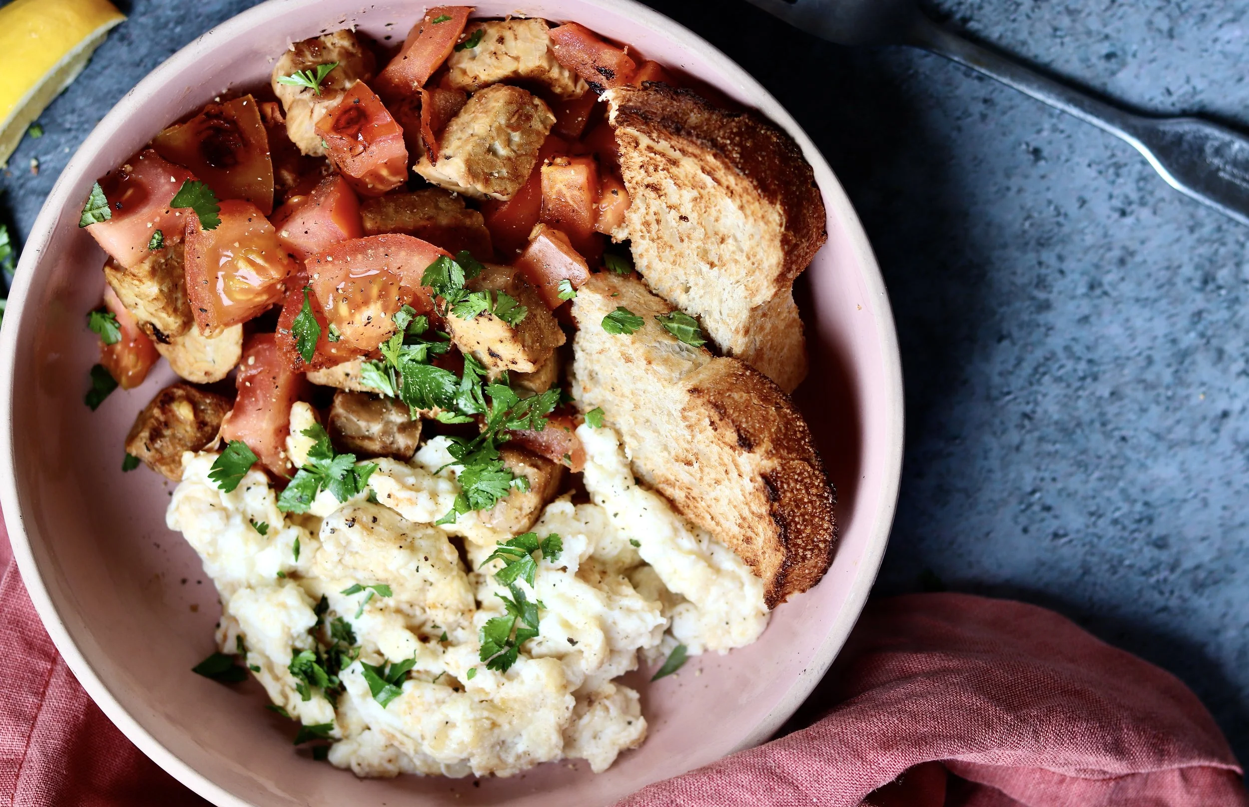 Why this is peri-perfect… This breakfast (or lunch) is the ultimate steadier in your day. Tempeh and egg whites pack in a full 30g protein to keep muscles strong and cravings calm, while cottage cheese adds creaminess and an extra boost of calcium for bone health. The tomato brings antioxidants to support hormone balance, and the slice of sourdough gives you just enough slow-burning carbs for energy without the crash. It’s hearty, balanced, and exactly what your peri body loves. For the days when you are craving something-on-toast :)